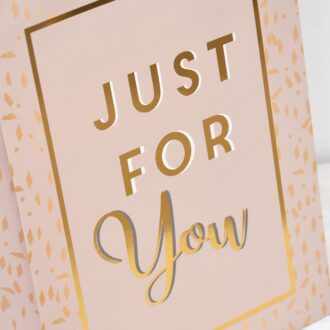 Розмір – 310*120*420 мм. Матеріал – ламінований картон з принтом. Особливості – друк з фольгуванням, ручки з плетеного поліестрового шнура з фіксаторами на кінчиках, подвійна проклейка дна, подарункова бірка для підпису подарунка.