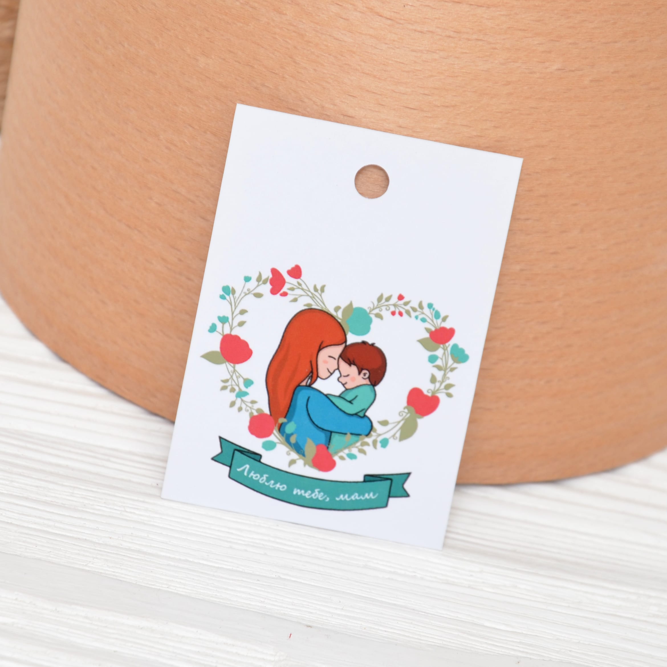 Особливості – повноколірний друк на фотопапері, отвір для прив’язування бірочки до подарунку.