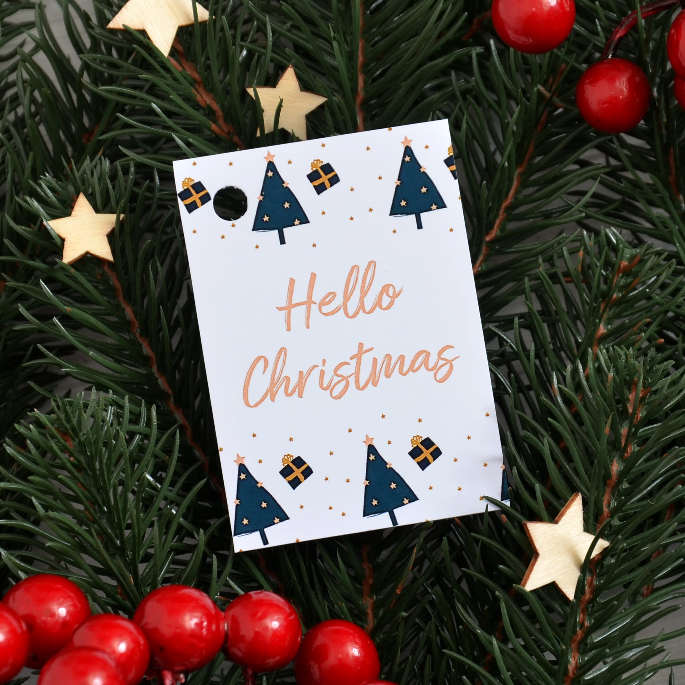 Бірка новорічна 50*70 мм Hello Christmas ялинки