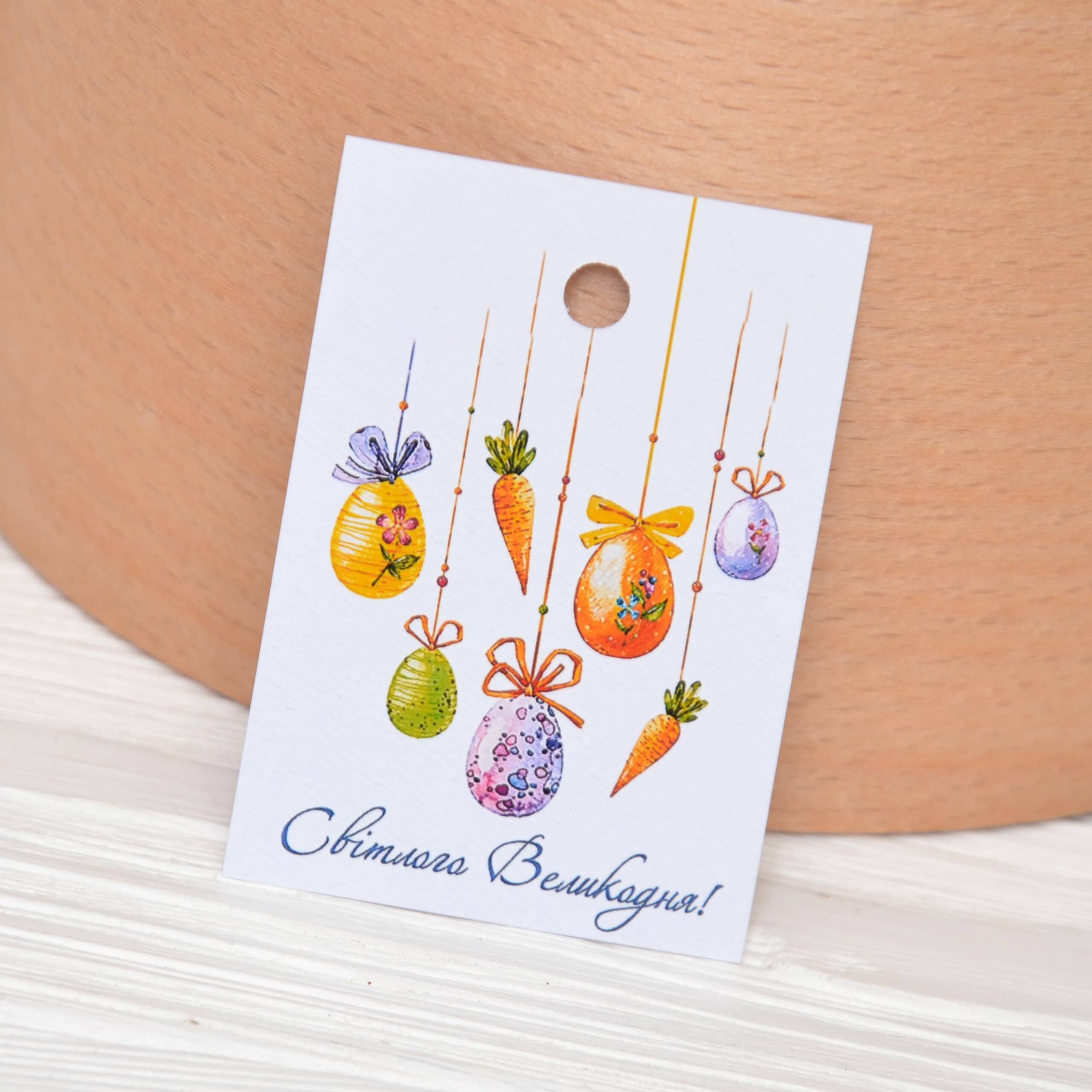 Бірка пасхальна 50*70 мм Світлого Великодня крашанки-морквинки