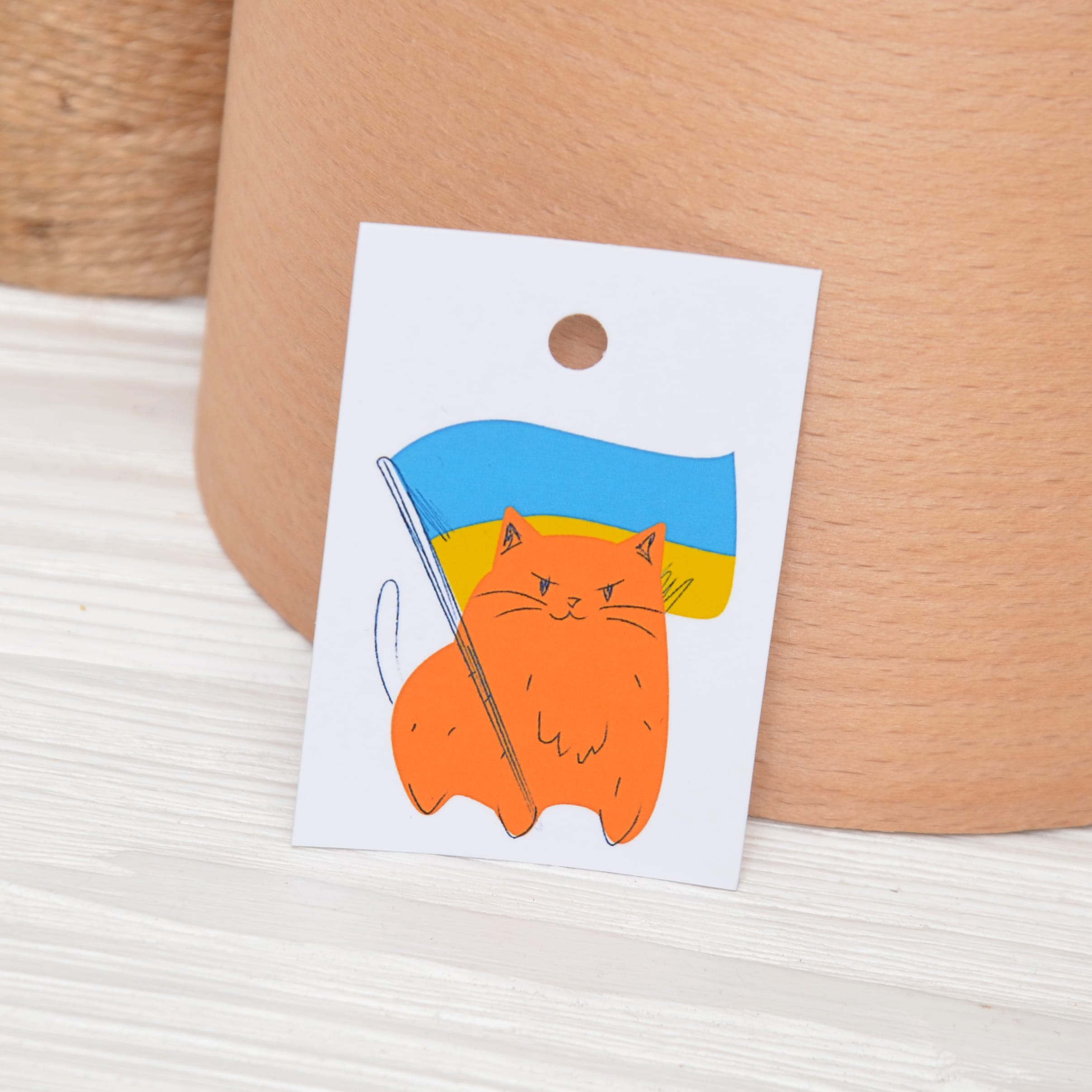 Бірка патріотична 50*70 мм Кіт з прапором
