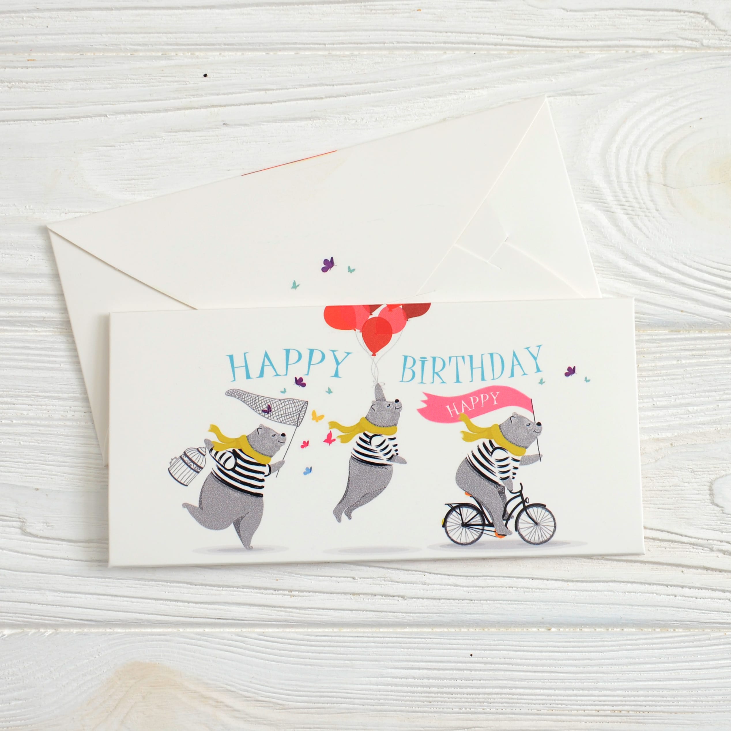 Конверт для грошей 167*83 мм Happy Birthday Ведмедики