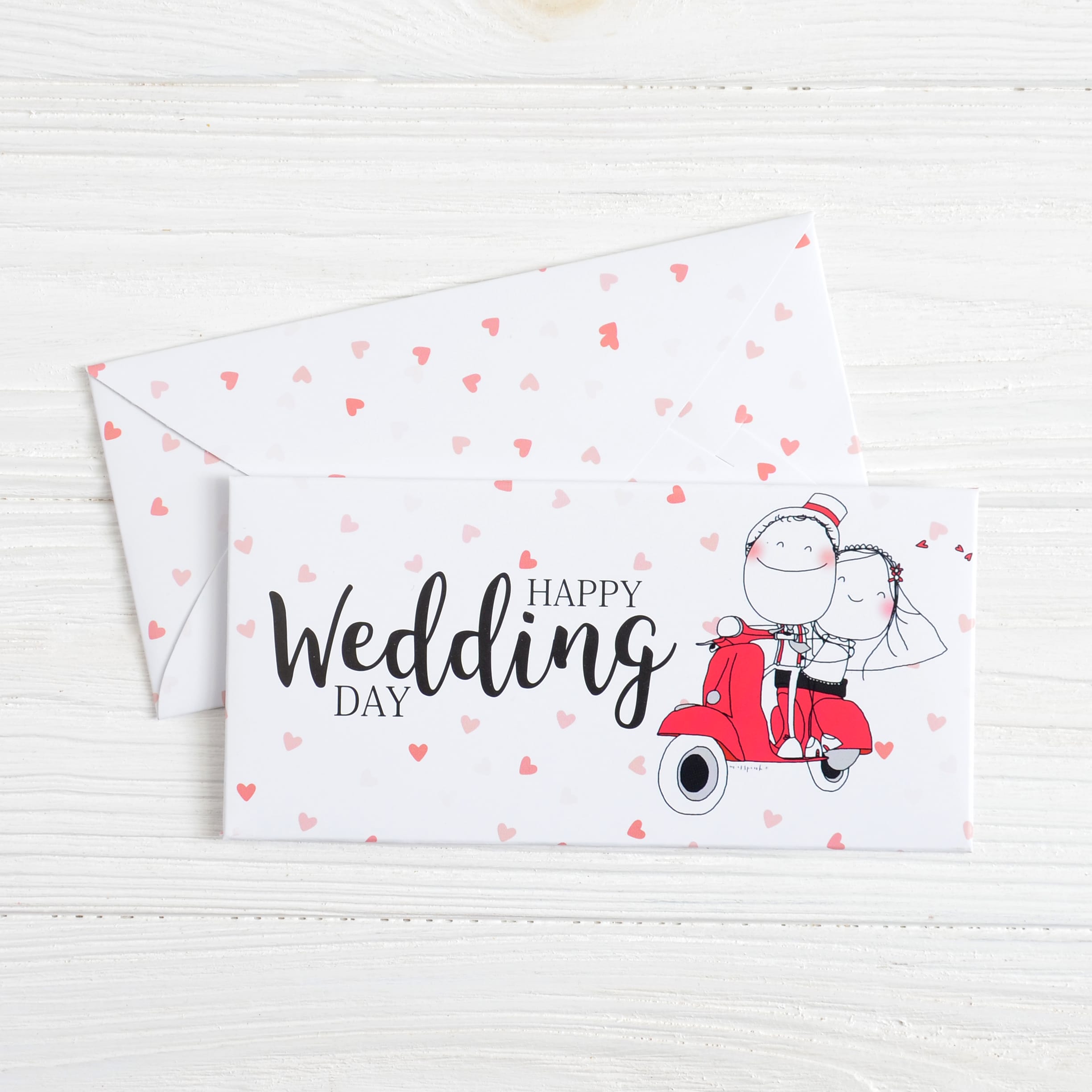 Конверт для грошей 167*83 мм Happy Wedding Day на мопеді