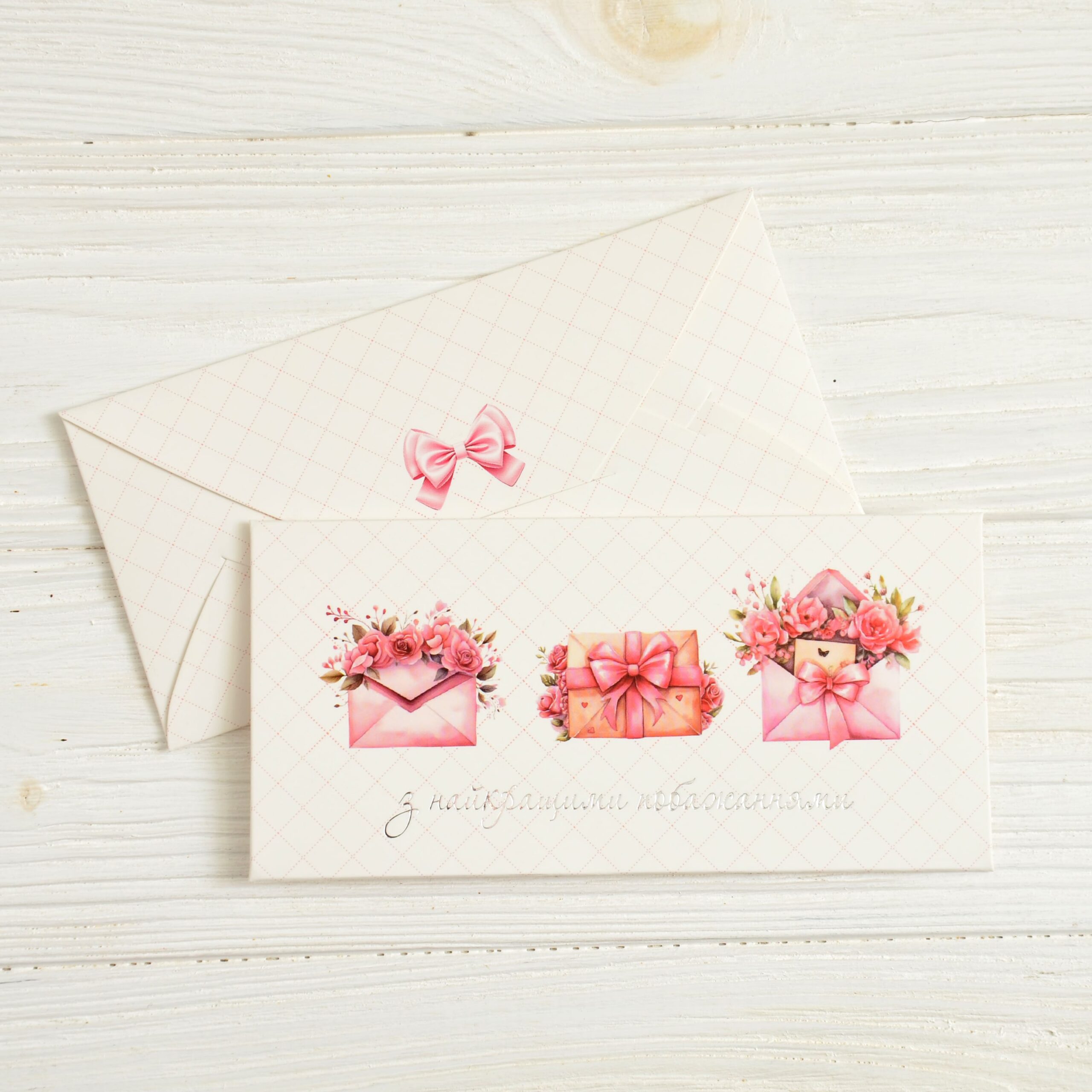 Конверт для грошей 167*83 мм (тиснення) З найкращими побажаннями конверти