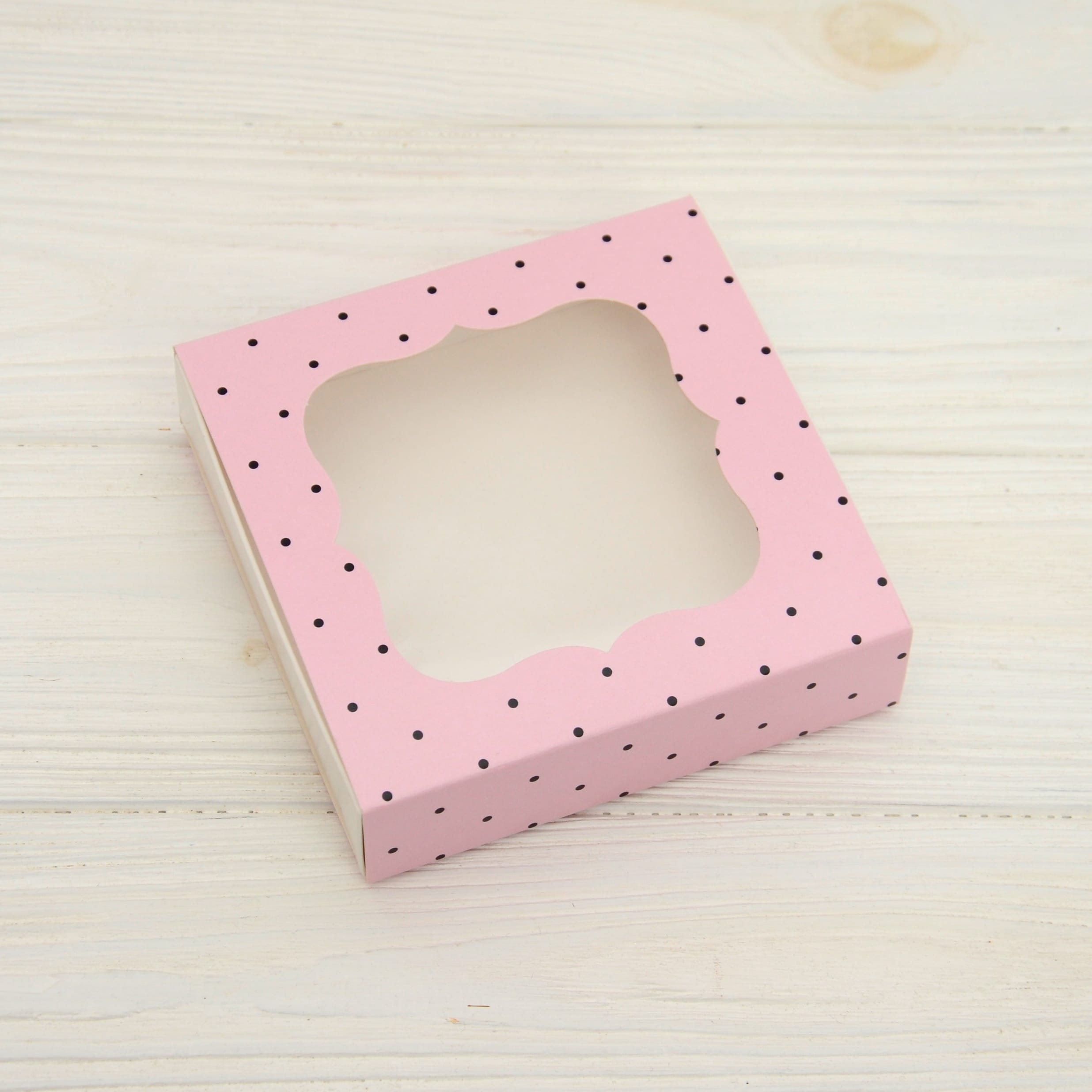 Коробка 120*120*30 мм бузкова з вікном (дрібний горошок)