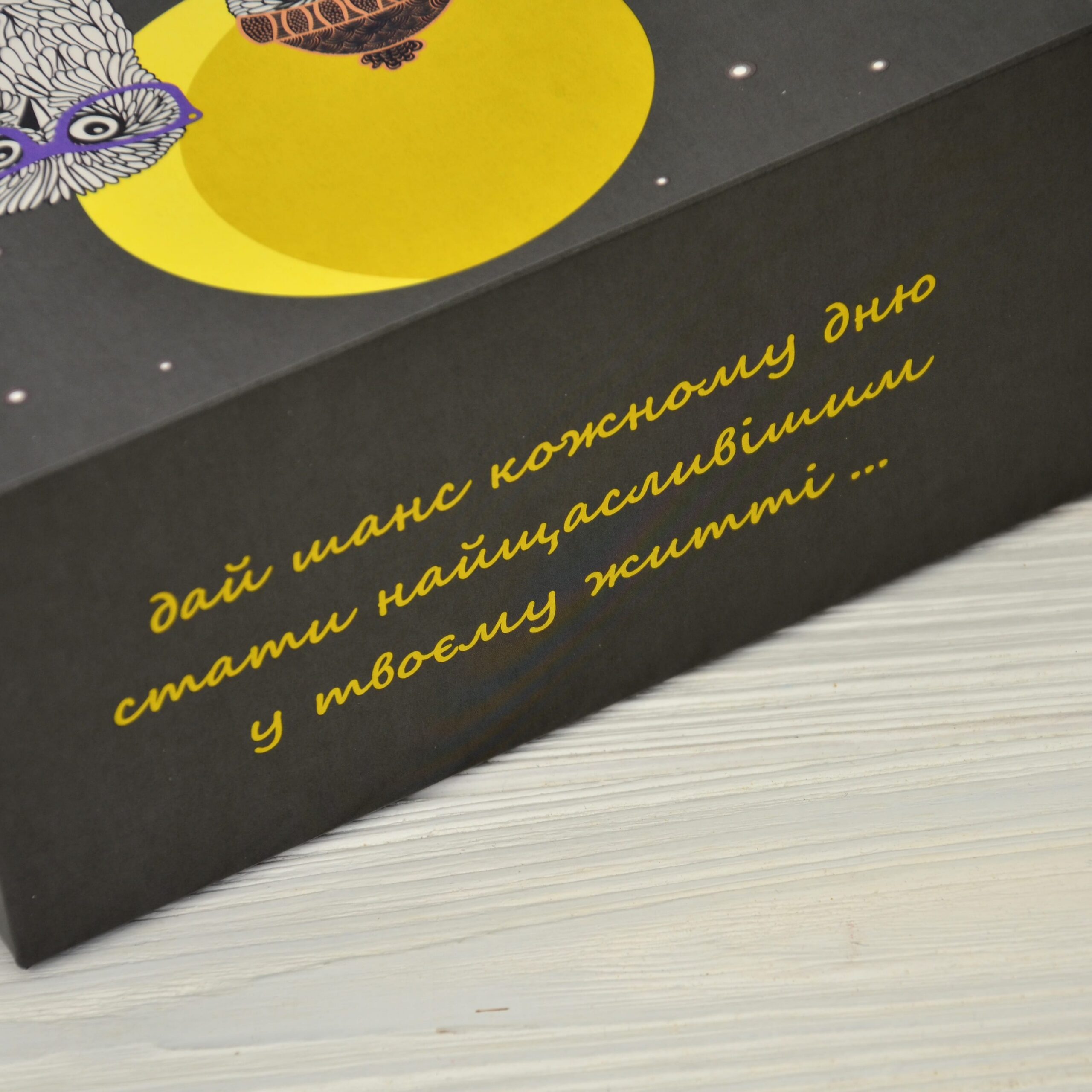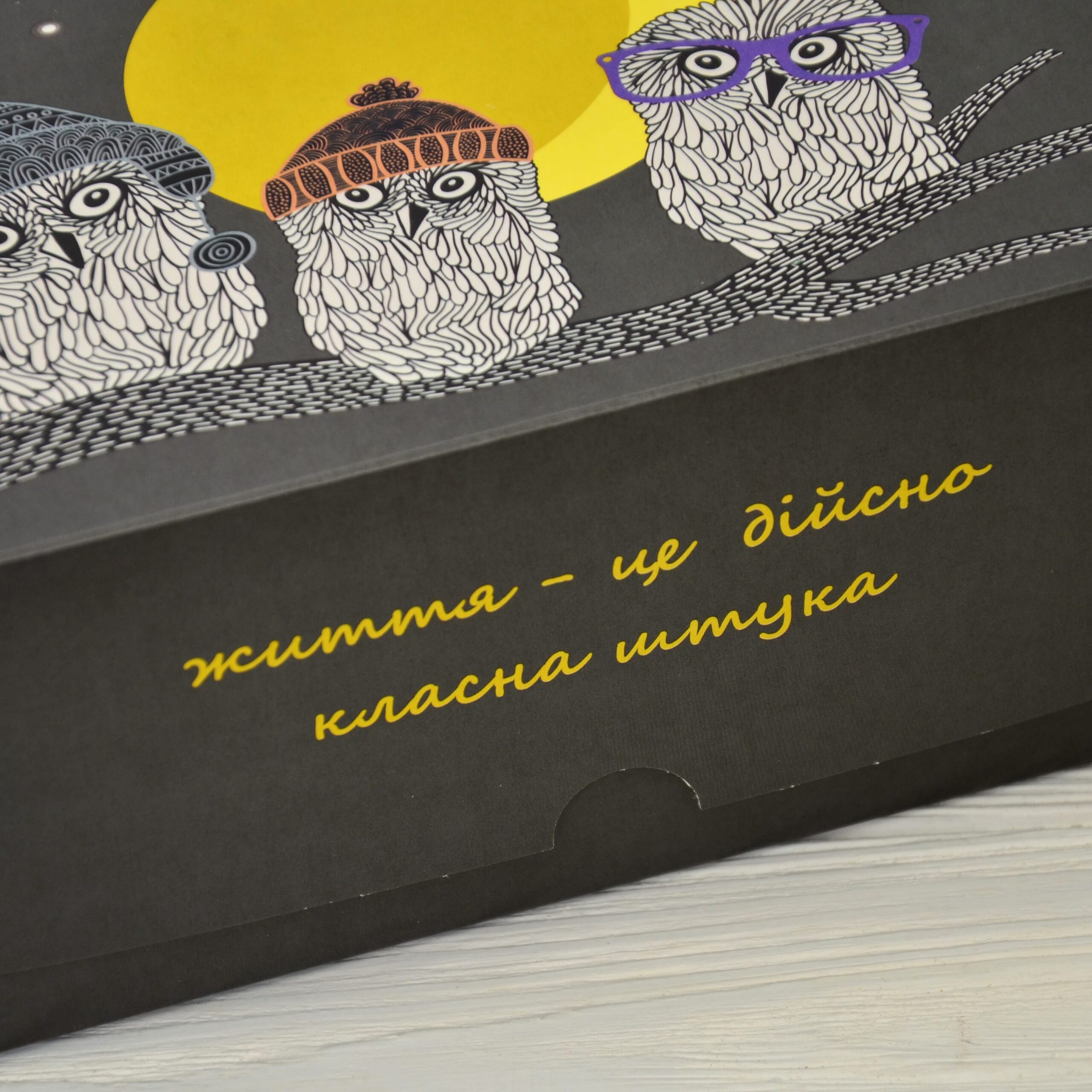 Конструкція – суцільна самозбірна коробка з відкидною кришкою.