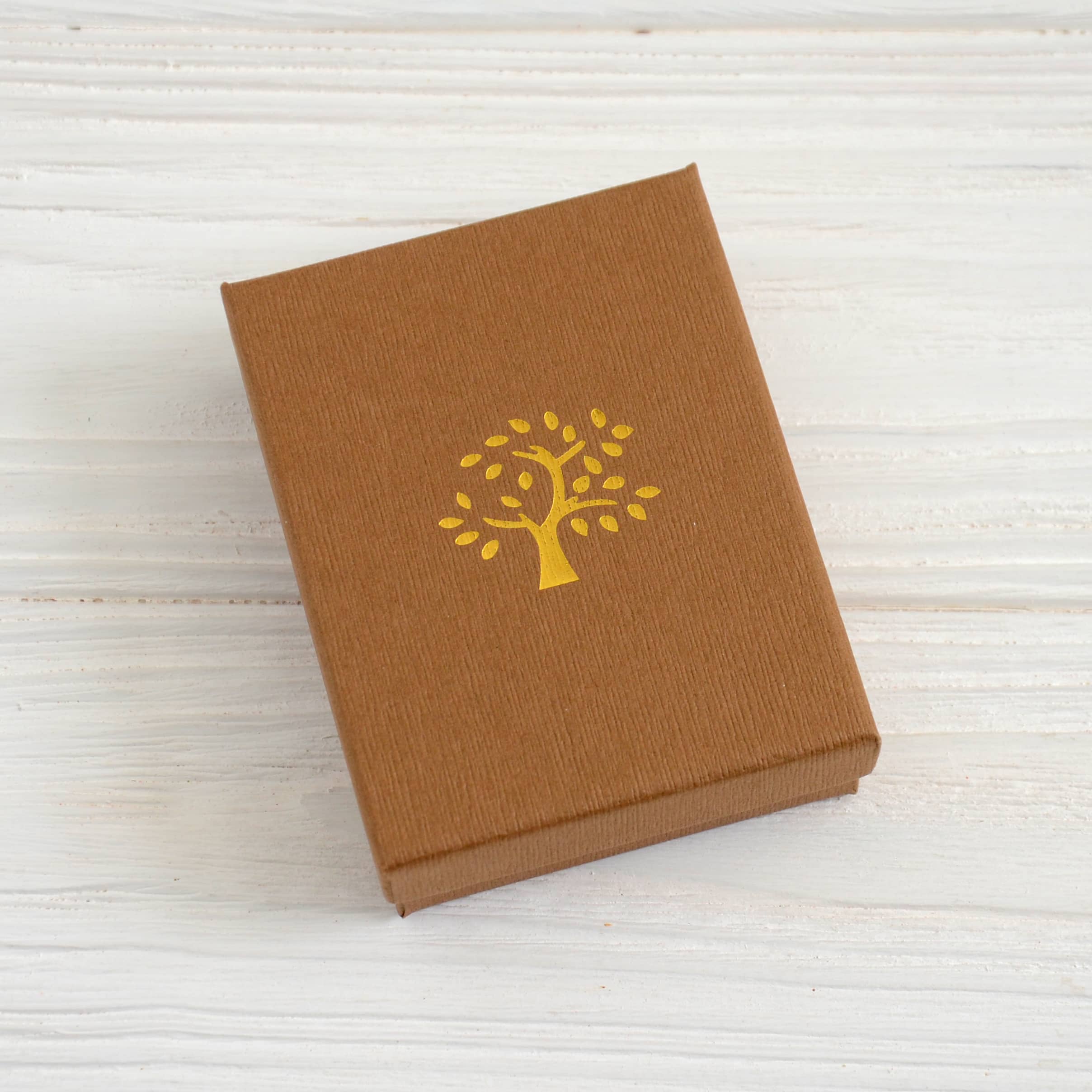 Особливості – принт з золотим фольгуванням на кришці, оксамитовий ложемент для фіксації прикраси всередині.