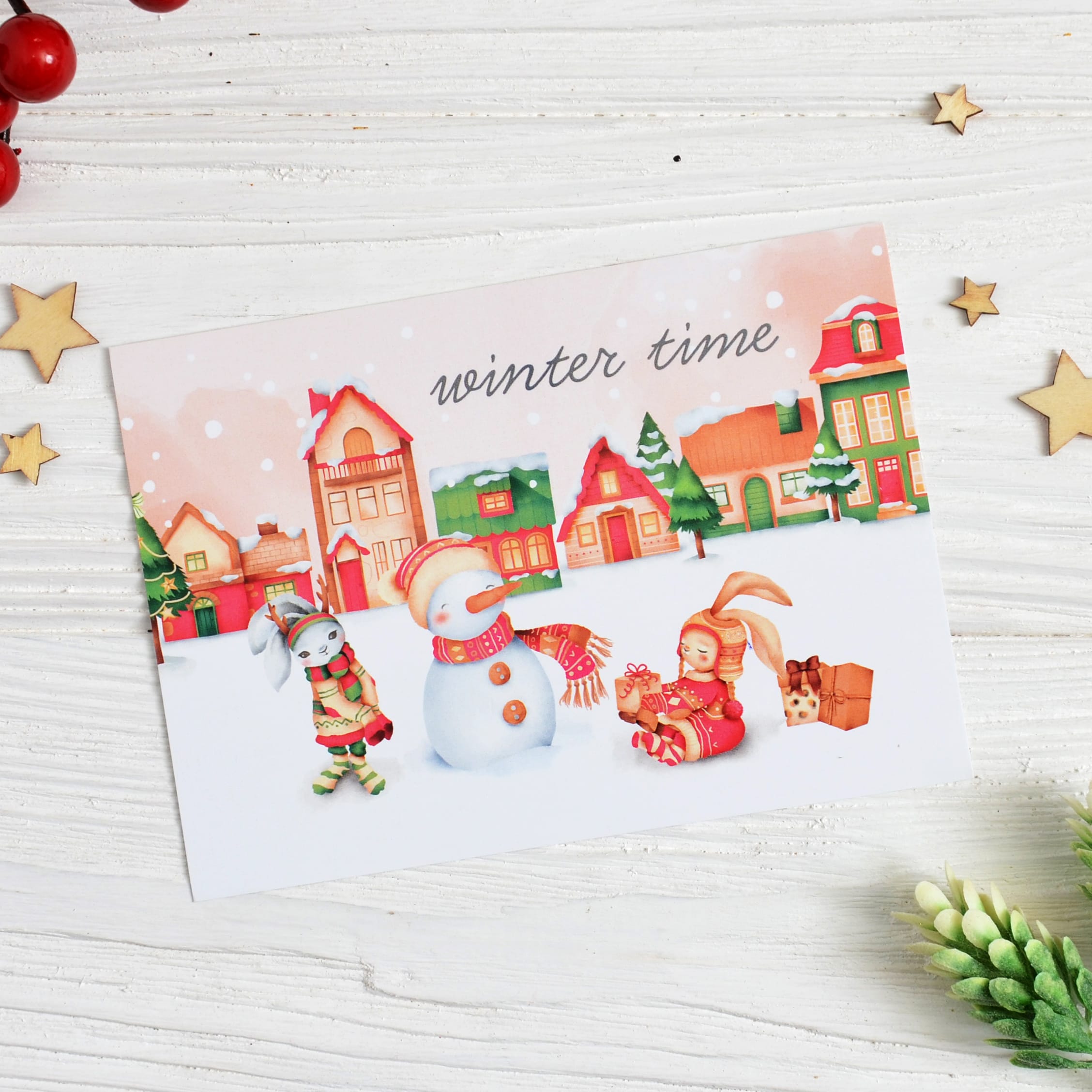 Листівка новорічна 100*140 мм Winter Time сніговик
