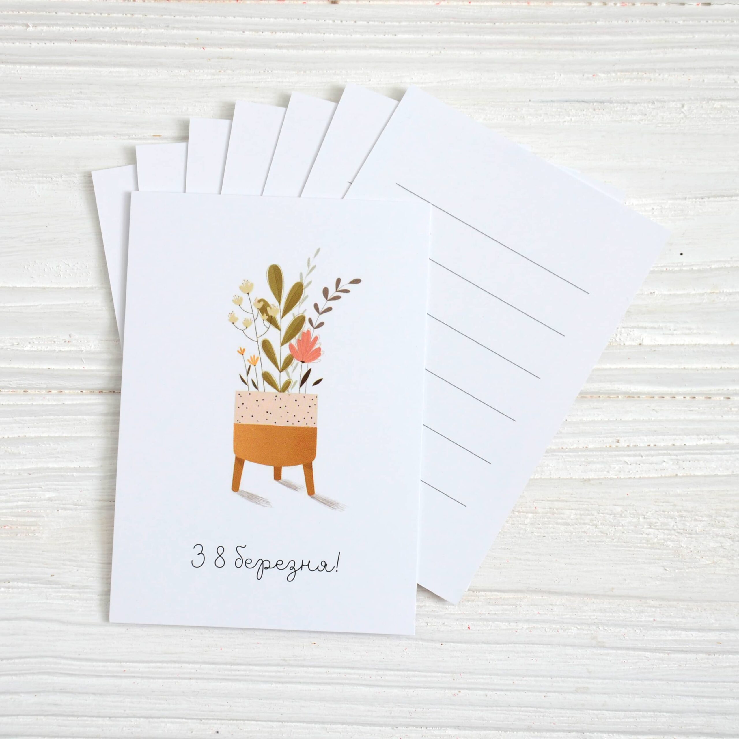 Міні-листівка 70*100 мм 8 березня квіти у горщику