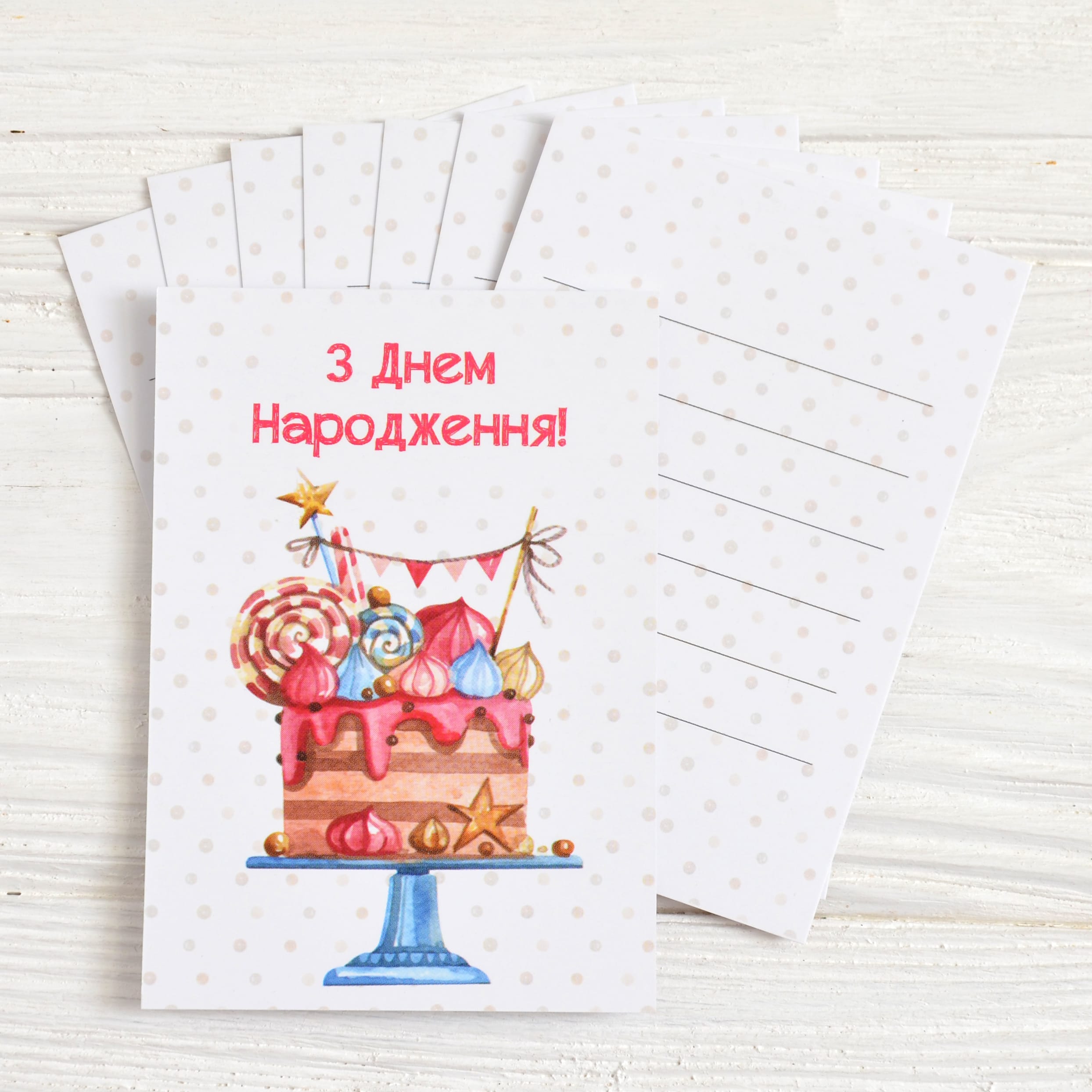 Міні-листівка 70*100 мм З ДН торт з прапорцями