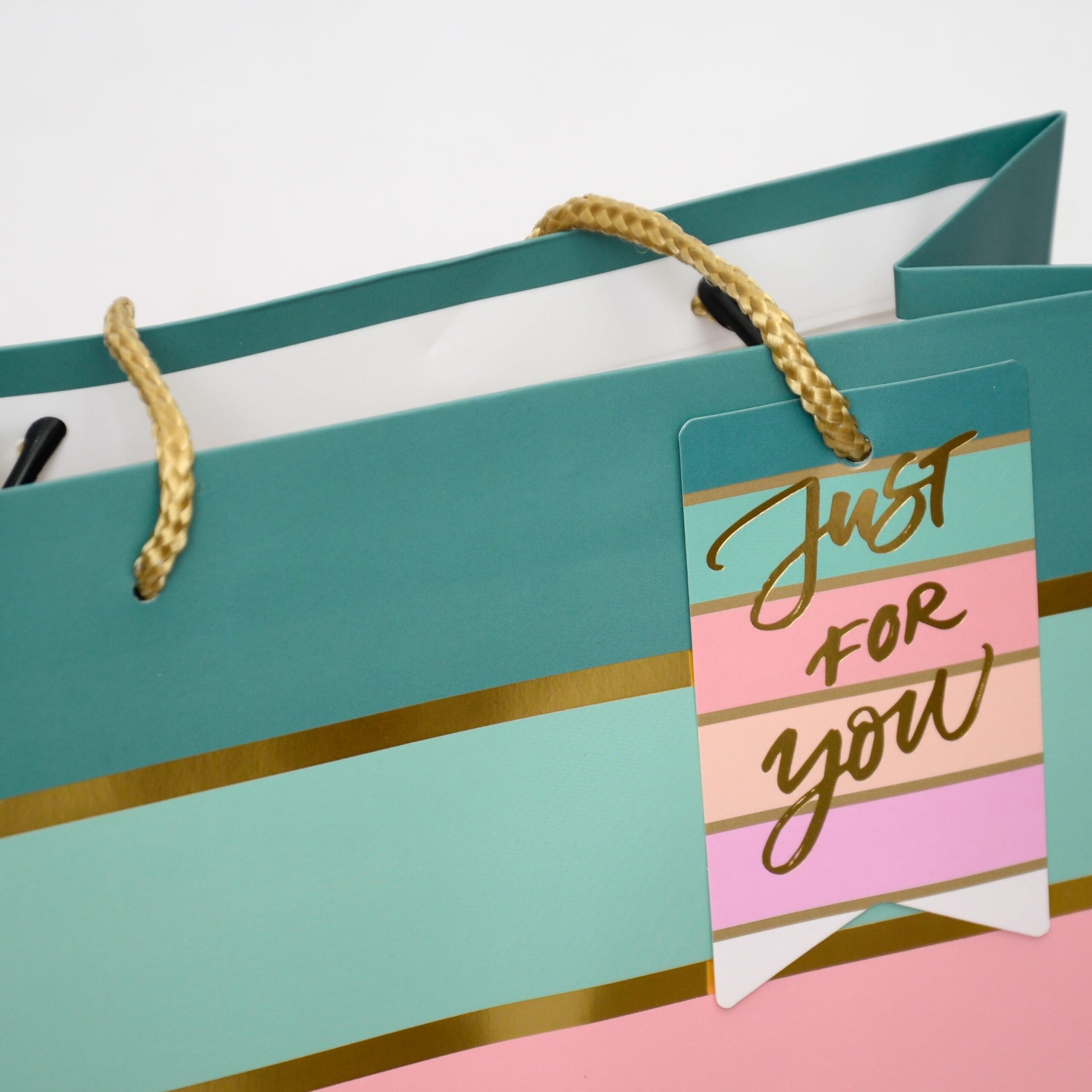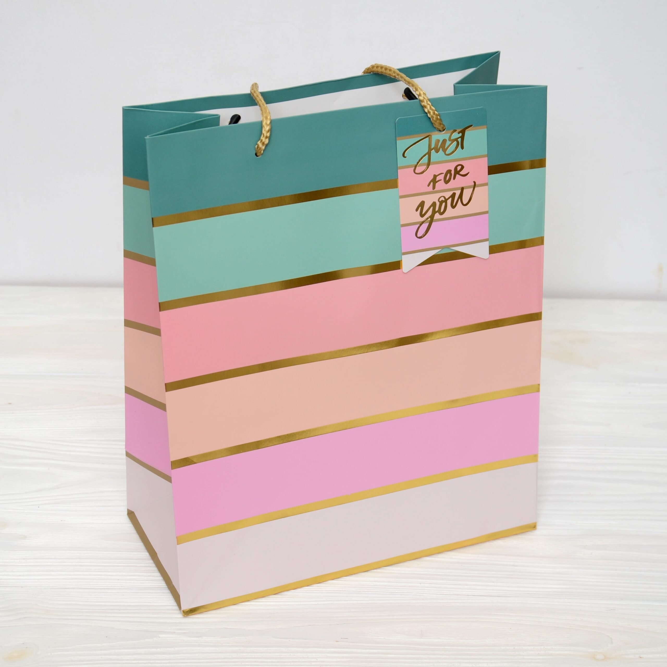 Особливості – друк з фольгуванням, ручки з плетеного поліестрового шнура з фіксаторами на кінчиках, подвійна проклейка дна, подарункова бірка для підпису подарунка.