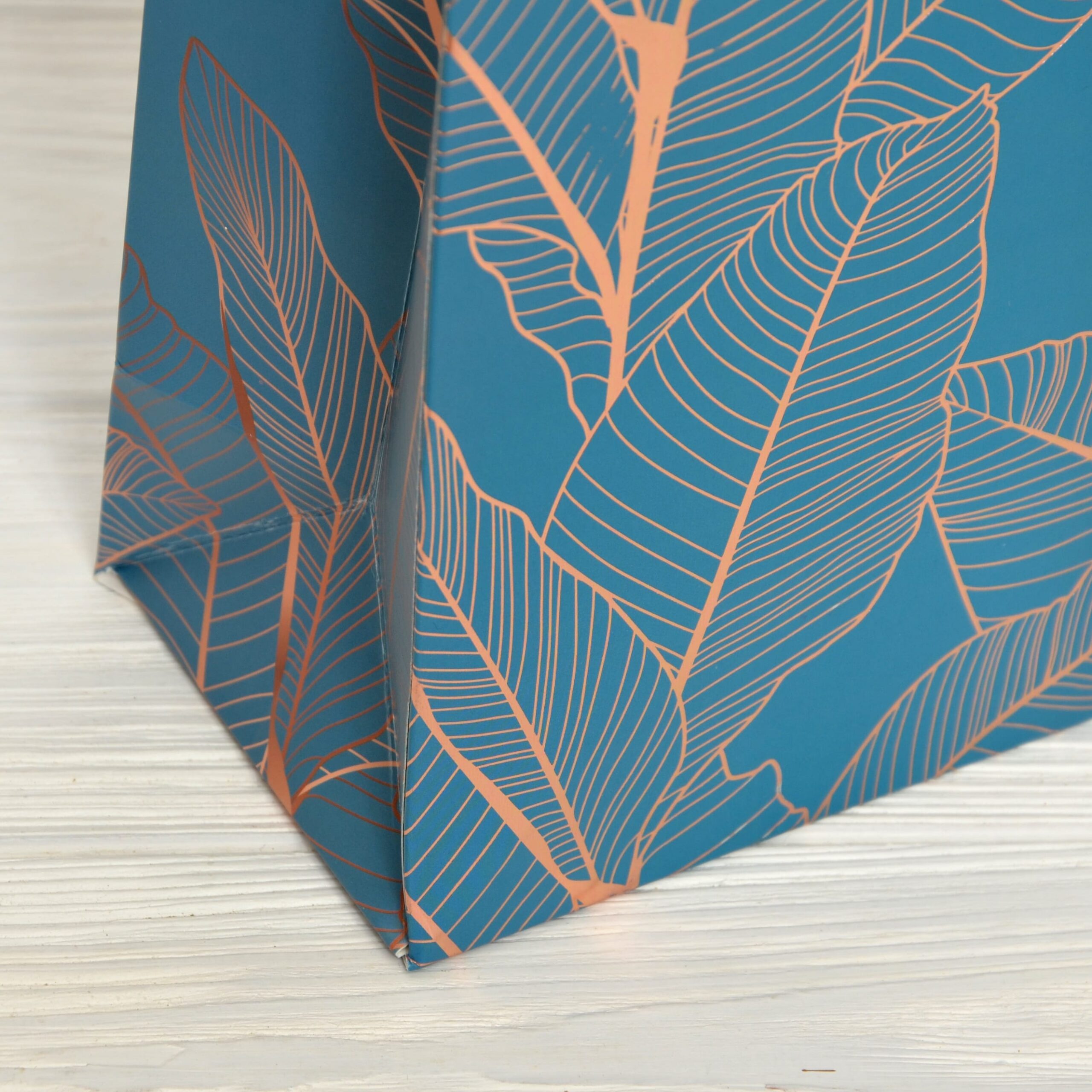 Особливості – друк з золотим фольгуванням, ручки з плетеного поліестрового шнура з фіксаторами на кінчиках, подвійна проклейка дна.