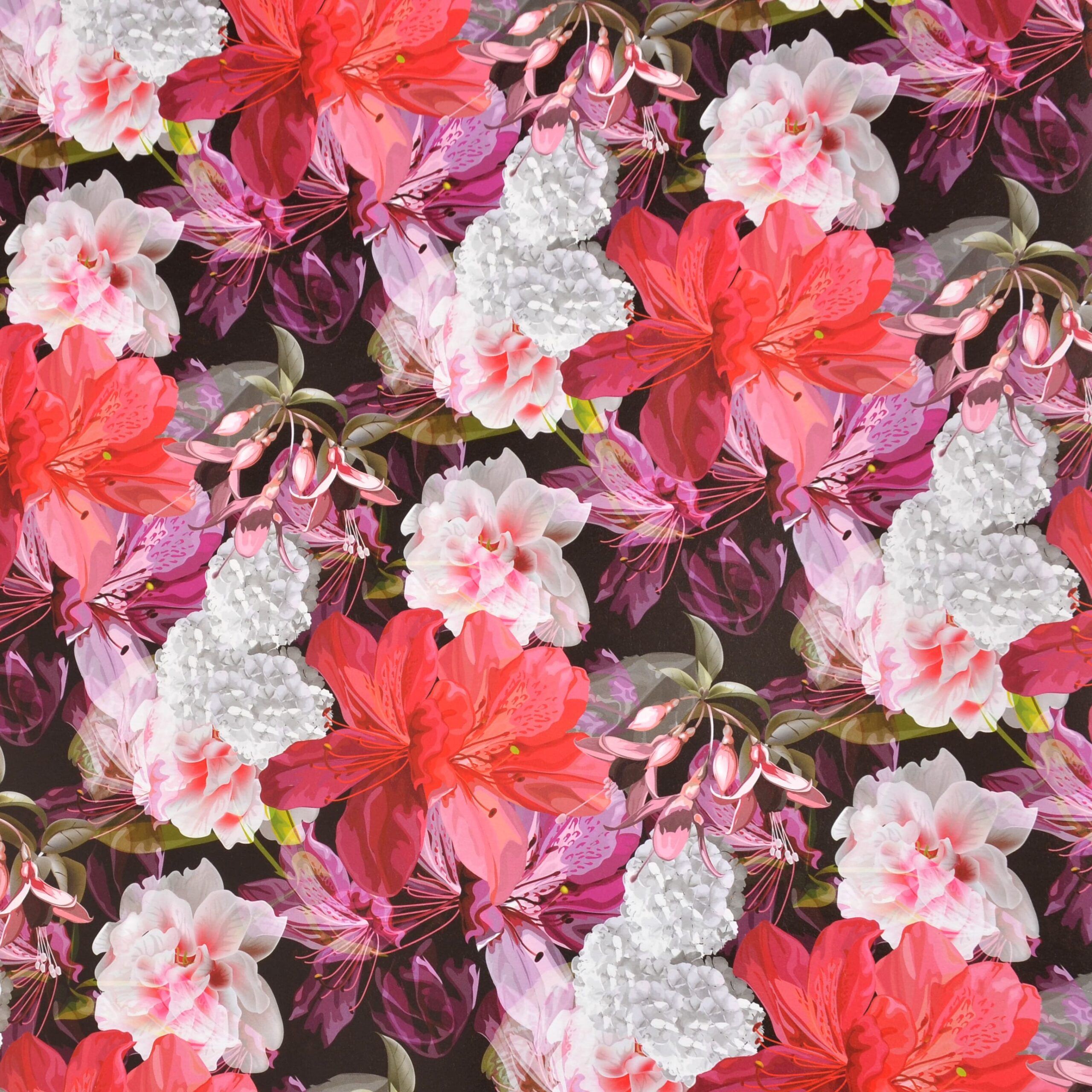 Папір подарунковий в листах 100*70 см (чорний – квіти тропічні)