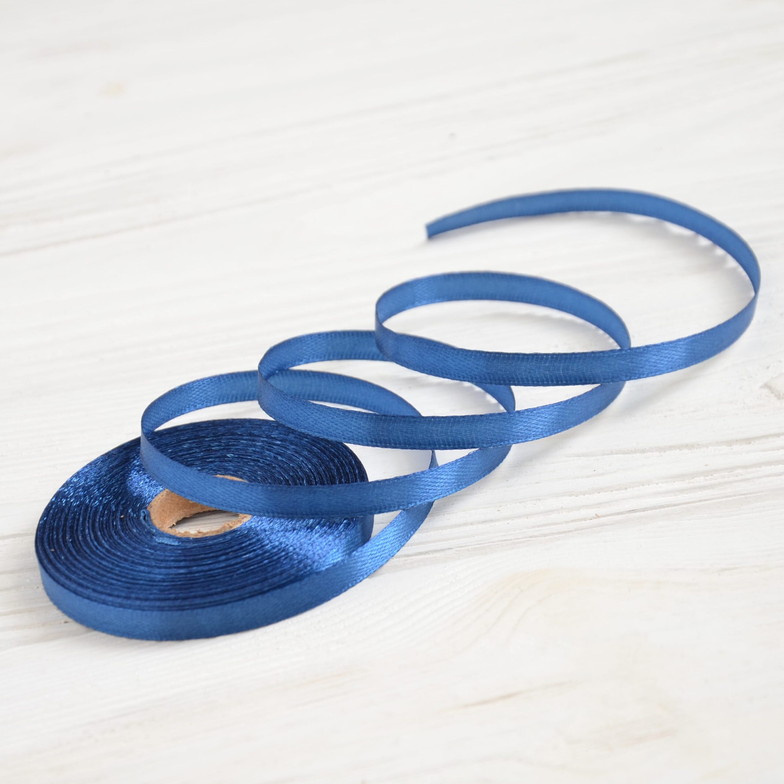 Стрічка атласна 0.6 см синя – рулон 22 м